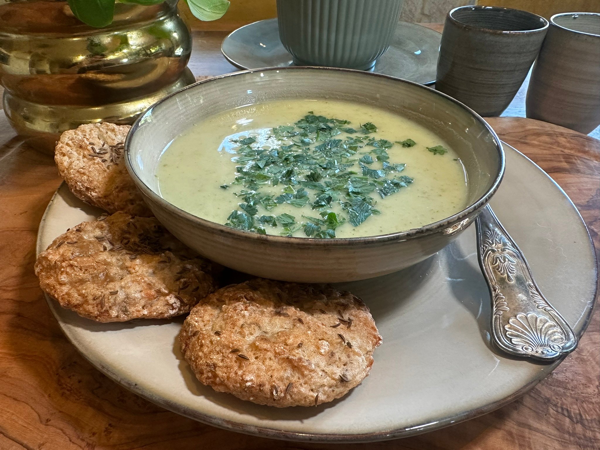 - Podáváme ozdobené nasekanými bylinkami nebo opraženými semínky. Skvěle se hodí s domácími chlebovými plackami.