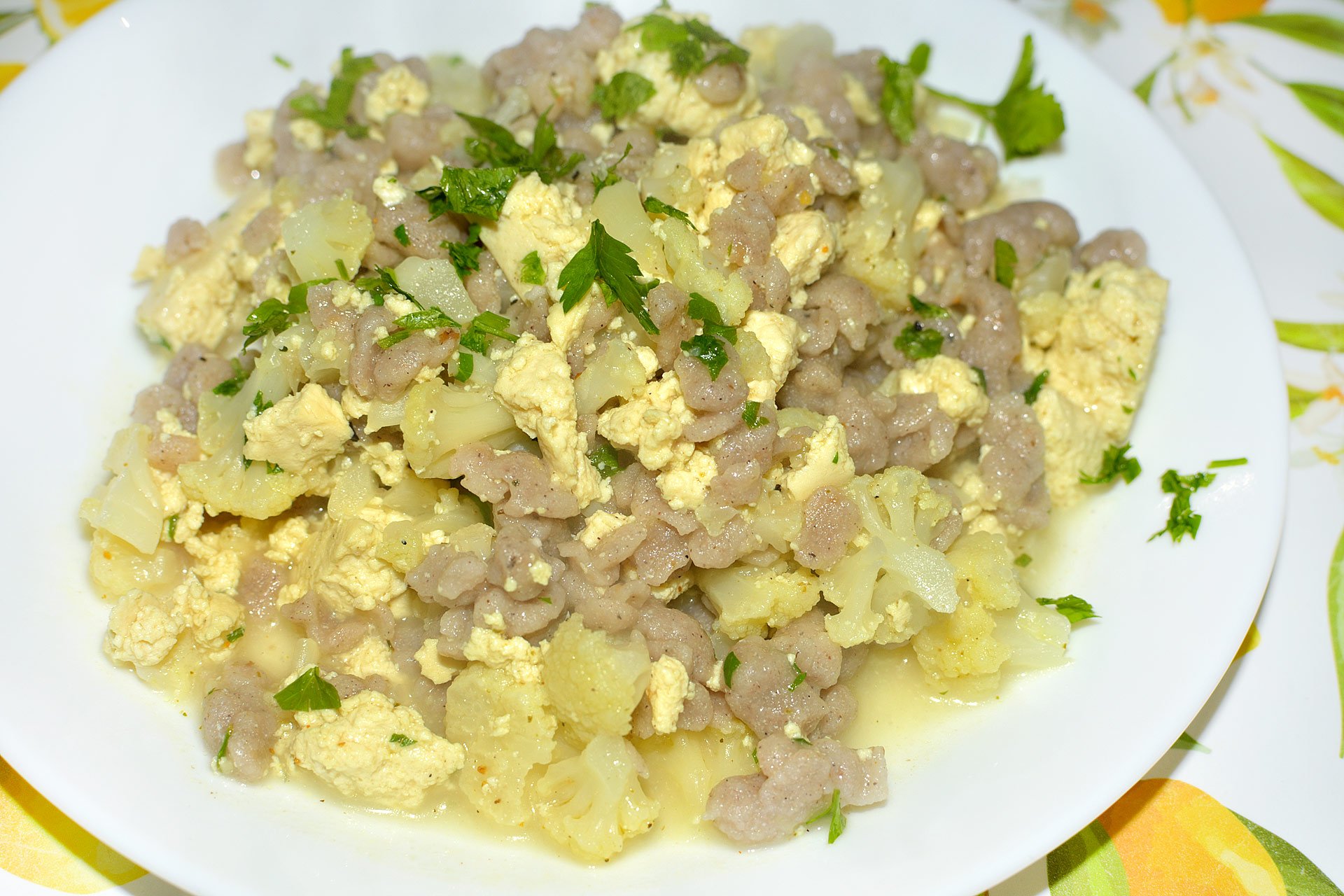 - Na pánev dejte olej a přidejte nasekaný květák se strouhanou citrónovou kůrou. Osmahněte, podlijte vodu a pár minut duste.