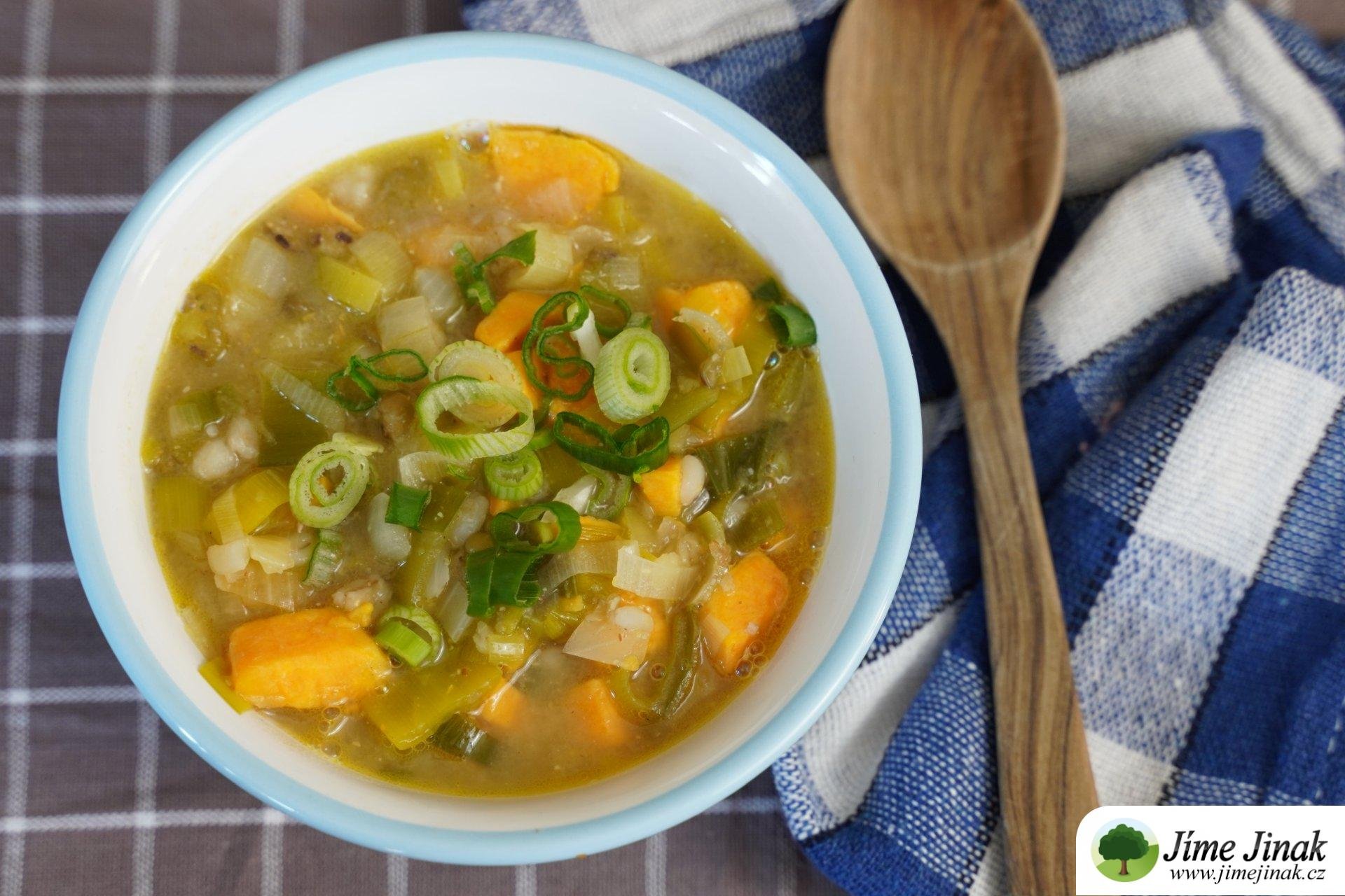 Snídaňová polévka s batátem, řapíkatým celerem a pórkem