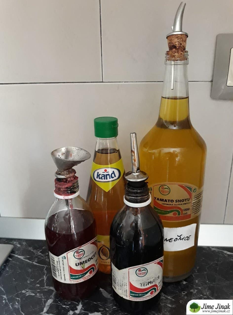 Jako první jsem si dala na stranu všechna zásadní ochucovadla, která bych těžko sháněla. V krabici přistálo miso, sojovka, ume ocet, jablečný ocet. Mám svojí osvědčenou kápezetku, kterou beru pokud možno všude, takže jsem doplnila ještě kuzu a umebošky. Tady nebylo nad čím dumat a byla to celkem malá krabička. Byla jsem spokojená, jak jsem skromná.