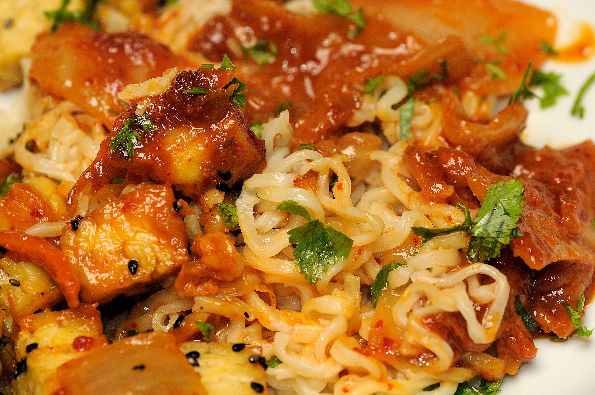 Jak připravit karamelizované kimchi s tempehem a nudlemi