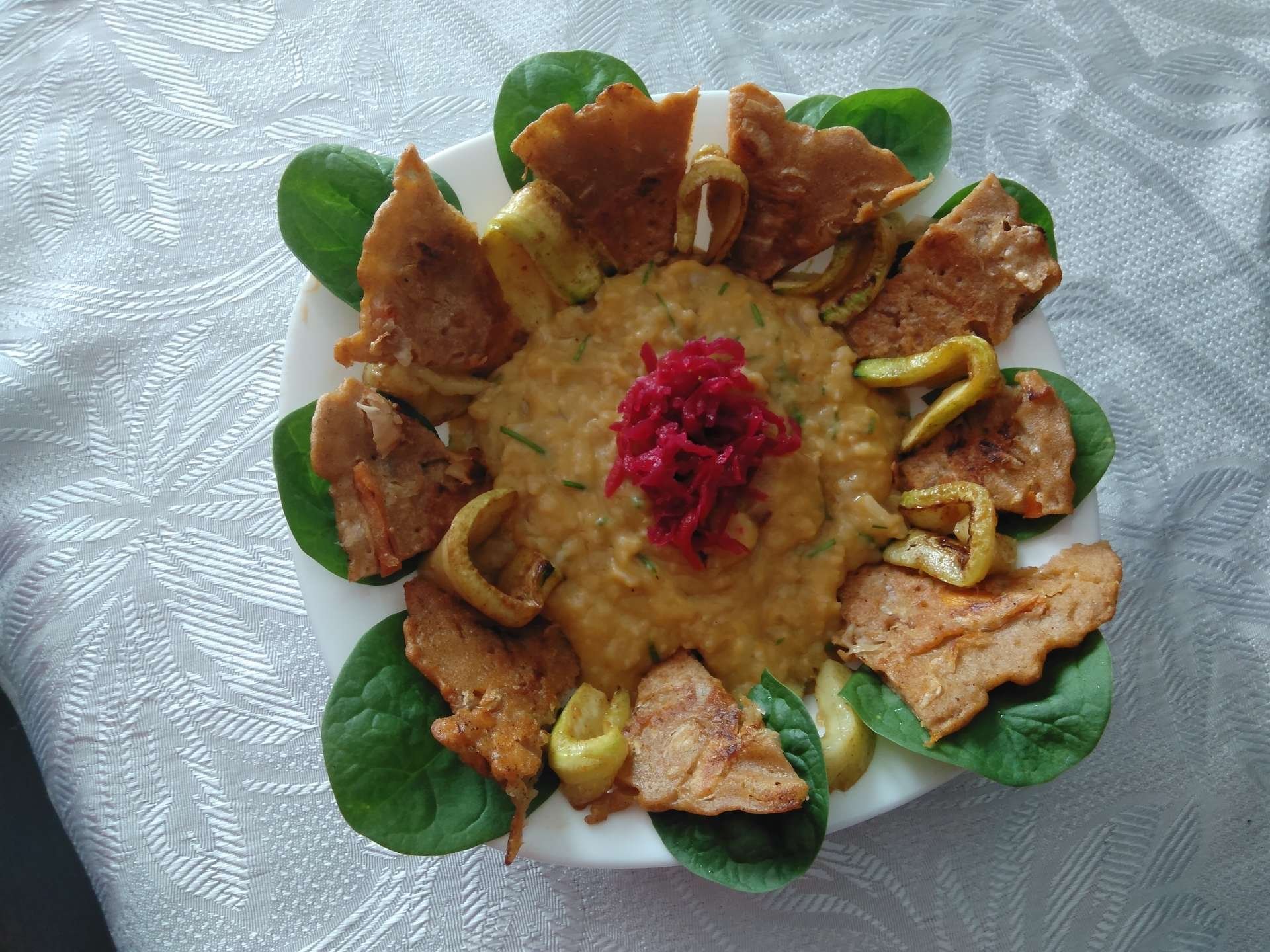 - V misce smícháme 1 díl kimchi a půl dílu mouky.