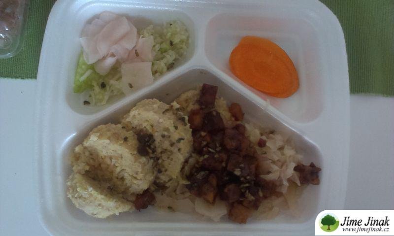 Po nějaké čase se Helča po krátké mateřské vrátila zpět do práce v kadeřnictví a začala si u Moniky objednávat obědy, což jí značně usnadnilo život v ty dny, kdy je celý den v práci. Já pro změnu si vařila pokaždé při studiích v Praze jídlo ráno do termosky a zkoušela neúspěšně jeden školní modul zvládnout na stravě z vegetariánské jídelny. To nešlo, takže jsem opět začala před týdnem z termoskami, když tu mě osvítilo. Vždyť Monika vozí jídlo Helče, třeba bych mohla mít jídlo od ní i já! Zájem o naše stravování jsem ve škole samozřejmě vzbudila už před rokem, když jsem se na studia vrhla, takže se ke mě v tu ránu přidalo několik spolužaček. Moniky kolegyně nám denně vozí výborné obědy přesně podle mého gusta a já mám vyřešené jídlo na celou dobu školy. Jsem nadšením bez sebe, užívám si ten nezvyklý servis (na fotce můj oběd v termosce a štrúdl bez cukru k svačině) a když ráno potkám ve škole Helču, která sem vodí Dandu do školy, musím se smát. Život je krásný a kruh se uzavřel. Monika se učila vařit od nás, teď nám zachraňuje žaludky, když jsme v práci a ve škole. Moni díky!