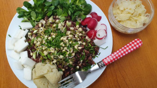 - Pro kompletní talíř doplníme na talíři ještě vařenou obilovinu.