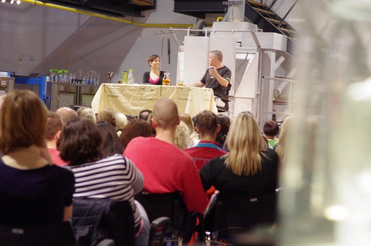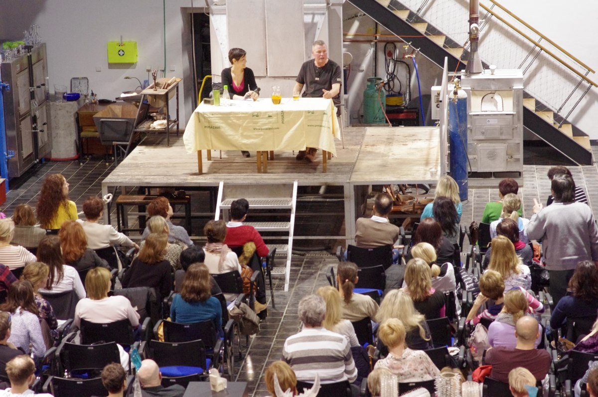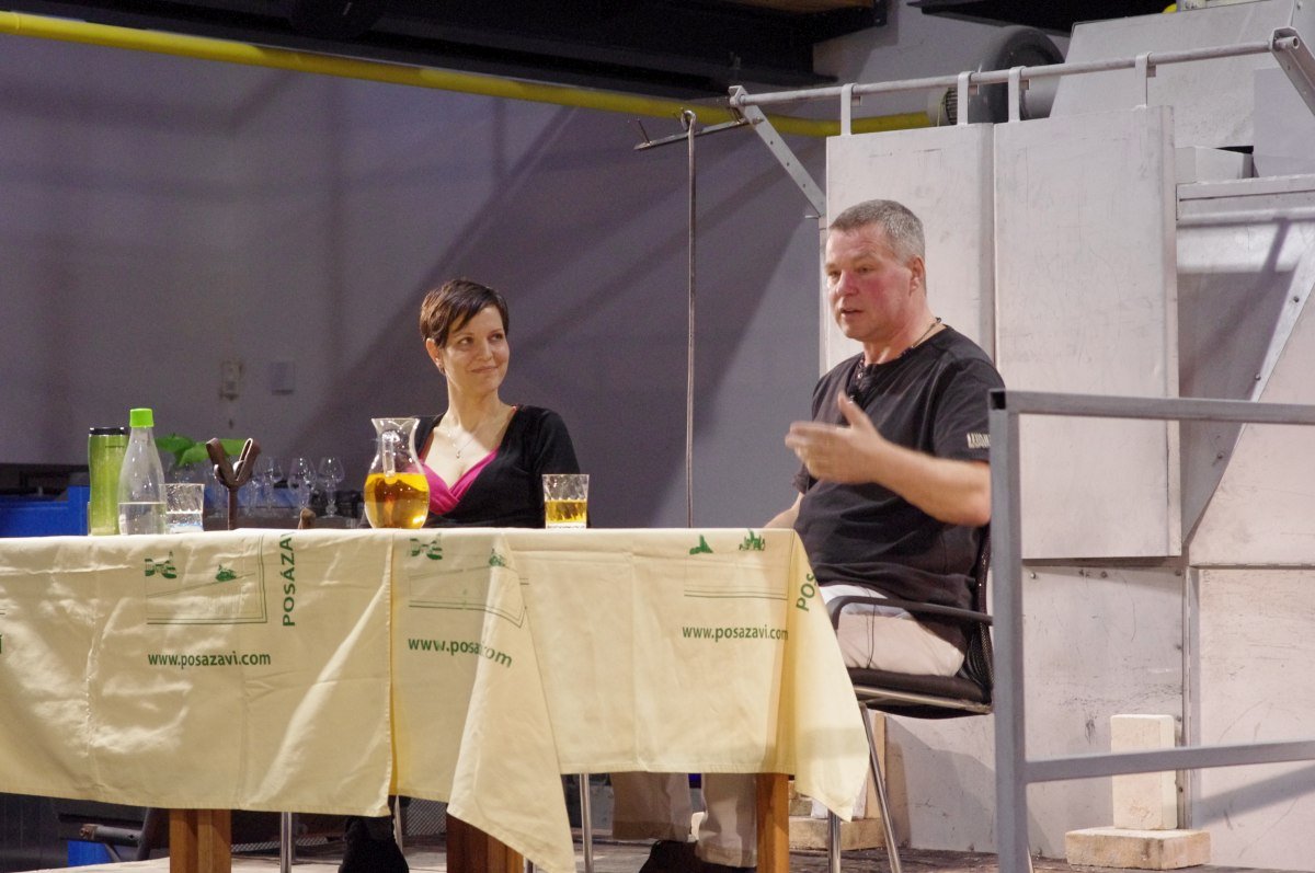 Sotva jsme začali, zazlobila nás technika. Předem nastavené mikrofony nebyly slyšet, za to byla slyšet sklářská huť za mými a Vladimírovými zády. Ta nám dala! Zvukově jsme ji nakonec udolali s pomocí jiného mikrofonu. Ale ta výheň! Ta nás rozpálila do ruda, jak můžete vidět na společné fotce. A teď už krátce o akci.