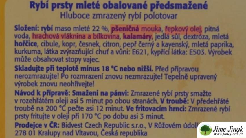 - Přidanou vodu do rybích prstů je nutné uvádět ve složení výrobku, pokud je jí v něm víc než pět procent.