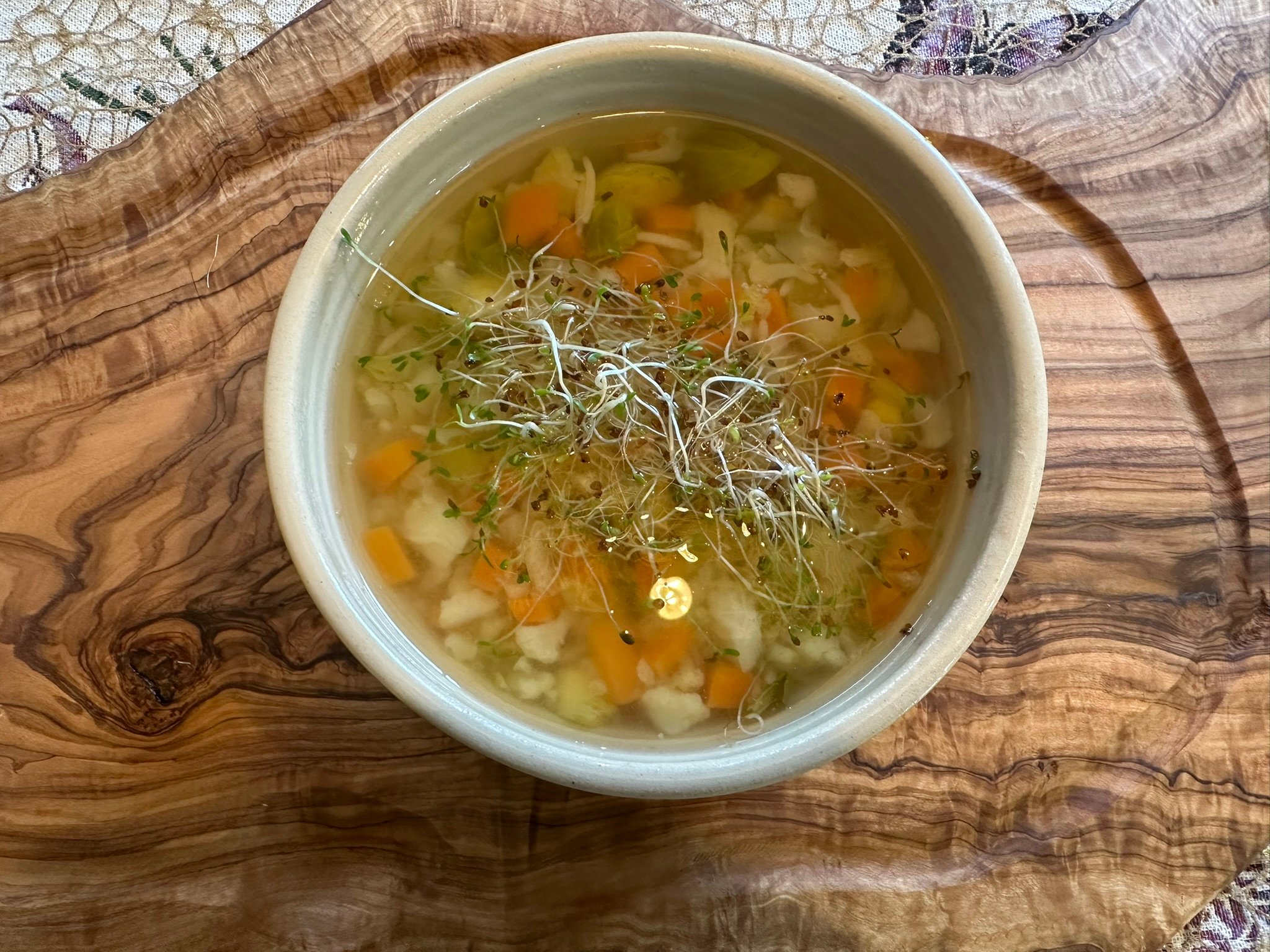 - Poté nalij polévku do misky a posyp klíčky vojtěšky.