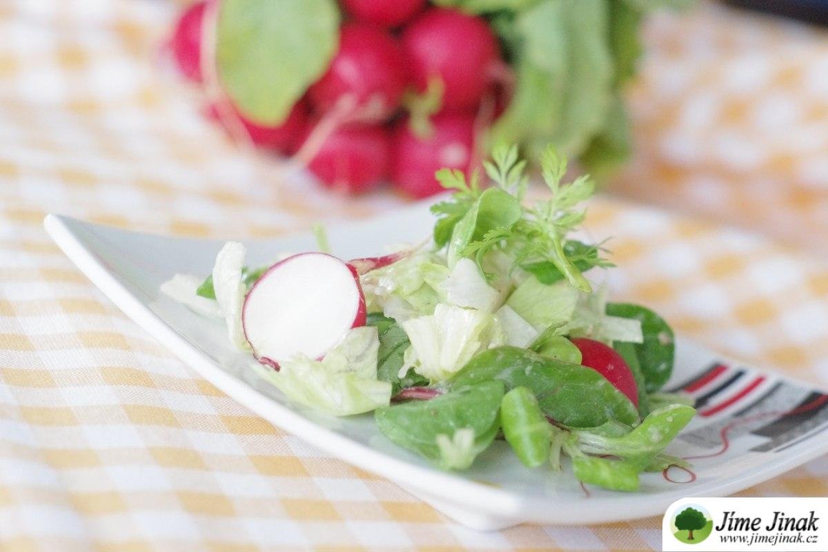 Bez zálivky tento salát mohou děti od 8 měsíců, když vynecháme koriandr a ředkvičku.