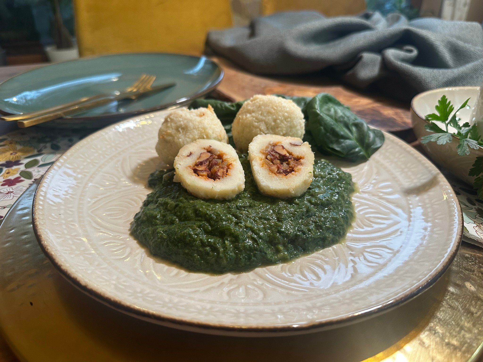 Recept na špenát s plněnými bezlepkovými knedlíky