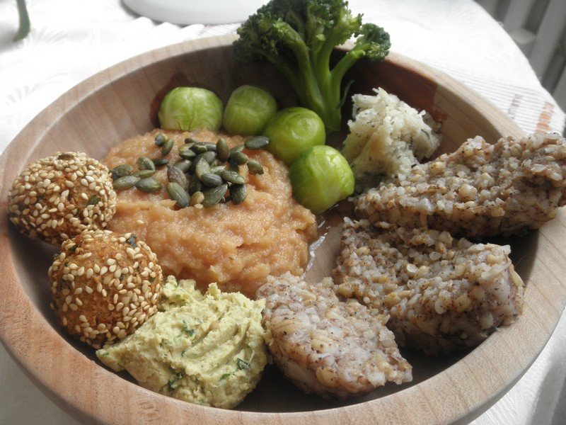Vezměte z lednice veškeré zbylé obiloviny (u mě to byla rýže + pohanka, rýže + oves, rýžové nudle), zalejte trochou horké vody, promněte rukama, smíchejte je s lžičkou soli a trochou pohankové mouky (můžete přidat nasekanou petrželku, cibuli nebo nastrouhanou mrkev, nebo také kmín, záleží na Vás) a rukama pořádně zpracujte v nelepivé těsto. Vytvarujte váleček, dejte ho na paráček (na paráček nejlépe položte ještě utěrku, jinak ho budete mít špinavý), zabalte do utěrky a napařujte 45 minut. Poté zkontrolujte špejlí. Nechejte na talířku vychladit a pak krájejte.