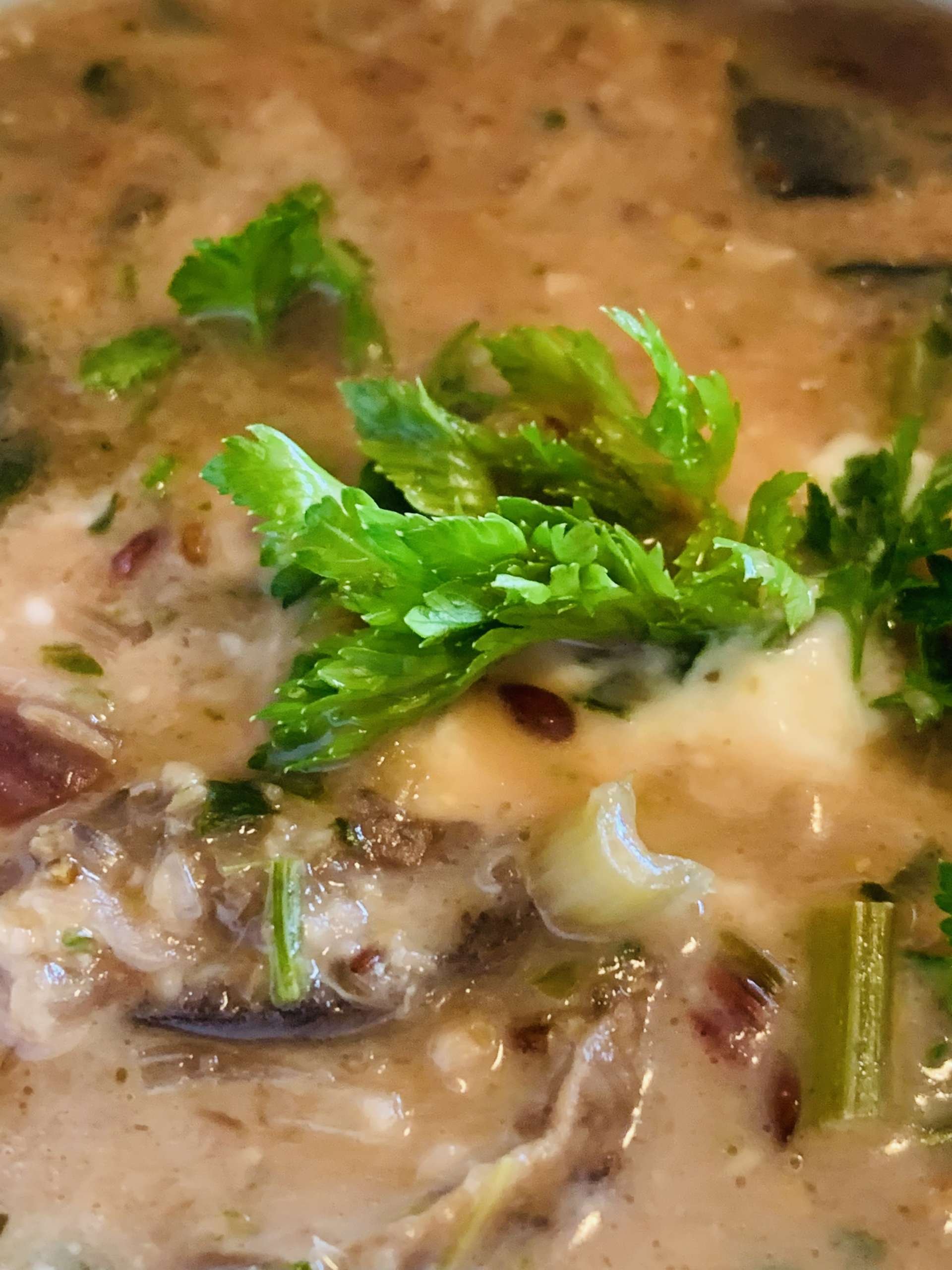 - Pokud se vám polévka zdá málo hustá, můžete ji na závěr zahustit i trochou uvařené rýže či jiné obiloviny. Mixovala bych ji lehce lokálně, přímo v polévce.