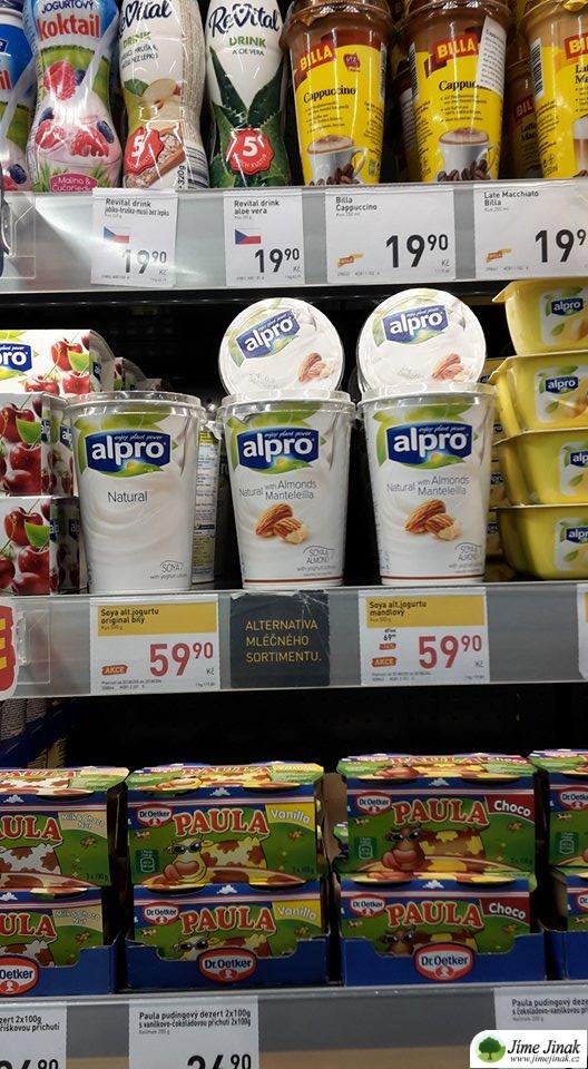 Billa jako jediný supermarket nabízí 3 značky tofu k výběru – Sunfood, Lunter a Alnatura. Také různá rostlinná mléka, pomazánky a jogurty.