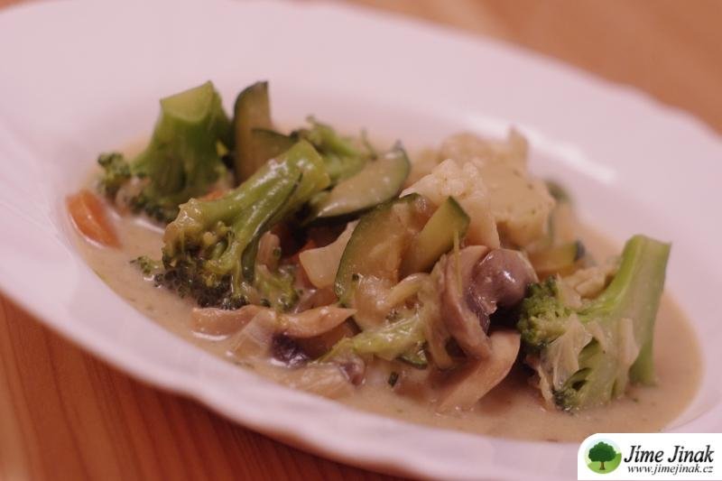 - Cibuli nakrájíme na půlměsíčky, cuketu na větší špalíčky, žampiony a mrkev na plátky, čínské zelí na nudličky, brokolici a květák na růžičky.